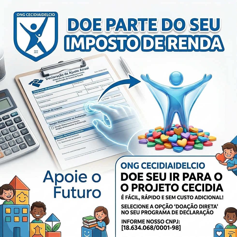 Doe parte do seu Imposto de Renda e ajude a ONG CECIDIAIDELCIO a continuar seu trabalho!